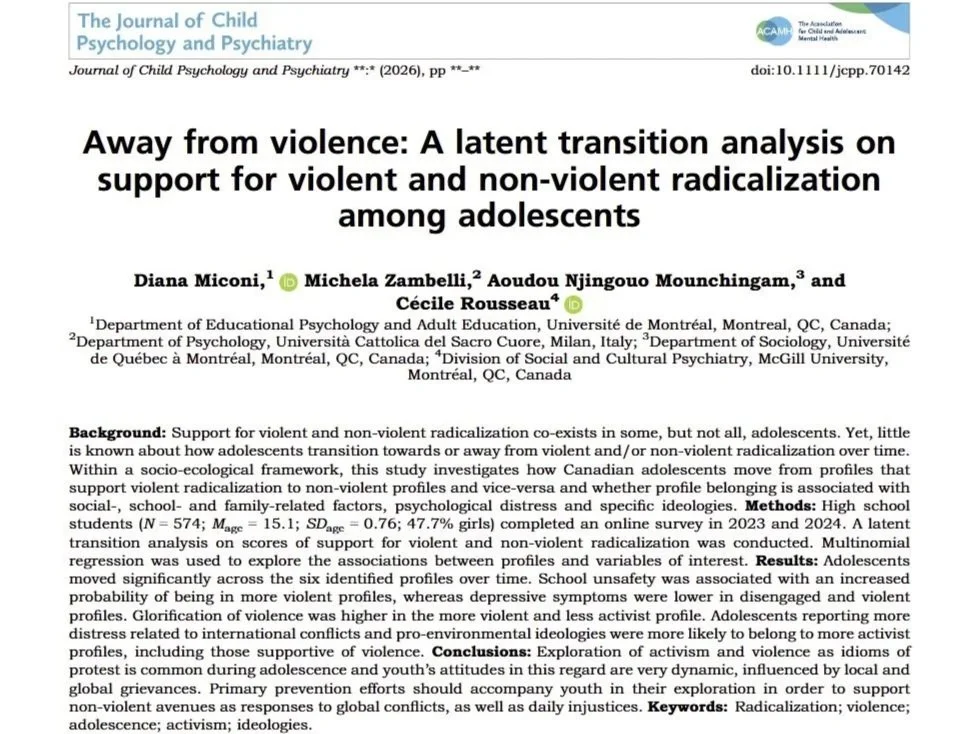 Away from violence: A latent transition analysis on support for violent and non‐violent radicalization among adolescents