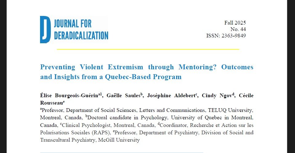 • Preventing Violent Extremism through Mentoring? Outcomes and Insights from a Quebec-Based Program