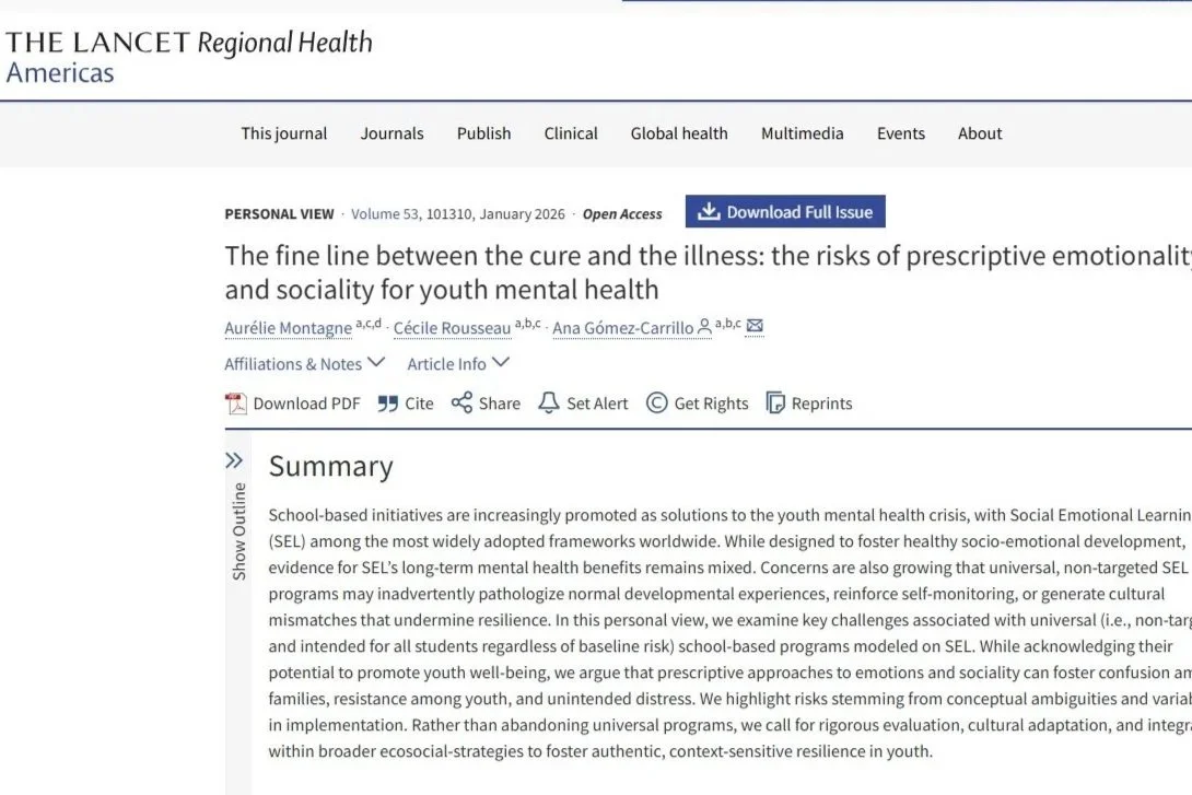 • The fine line between the cure and the illness: the risks of prescriptive emotionality and sociality for youth mental health