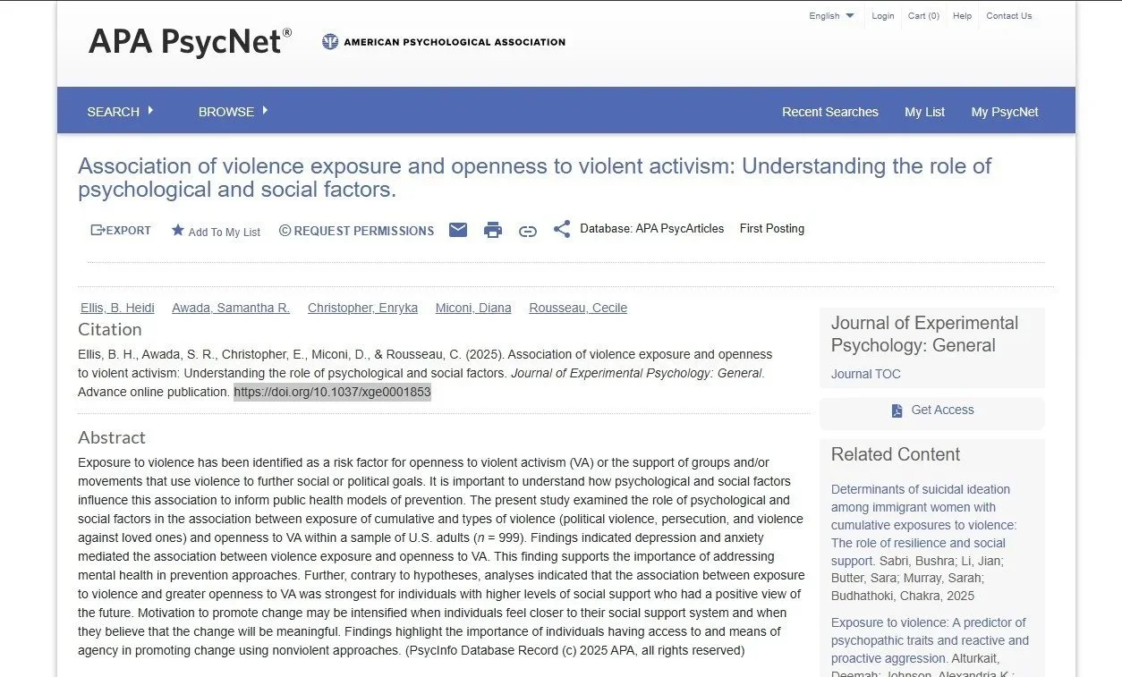 • Association of violence exposure and openness to violent activism: Understanding the role of psychological and social factors.